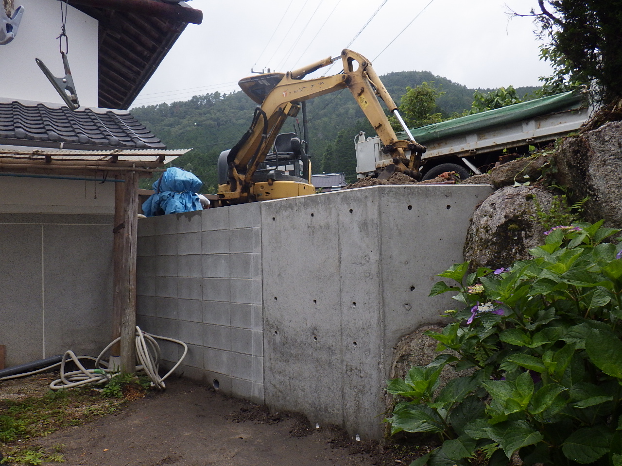 元々あった石積みとの擦り付け箇所には、現場打ちコンクリートで土留めを行います。