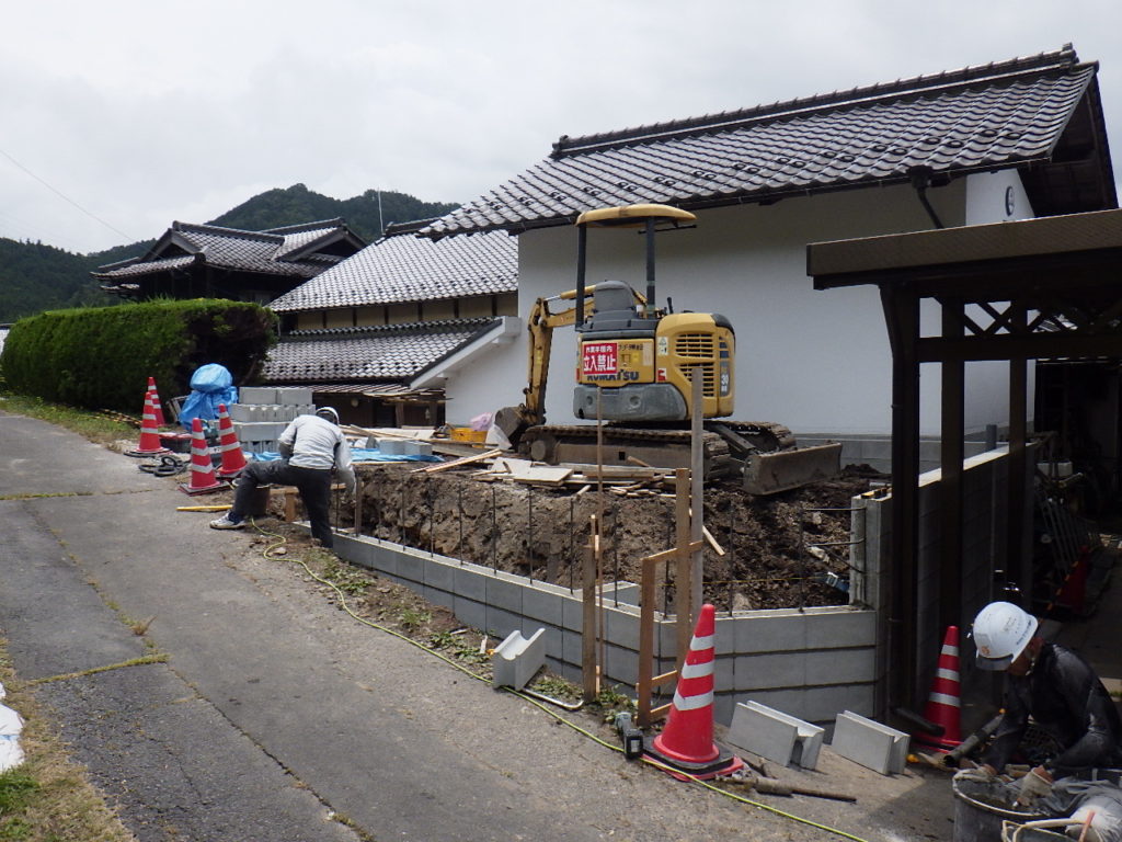 まず駐車スペースの外周に擁壁を造り、駐車スペースを作ります。