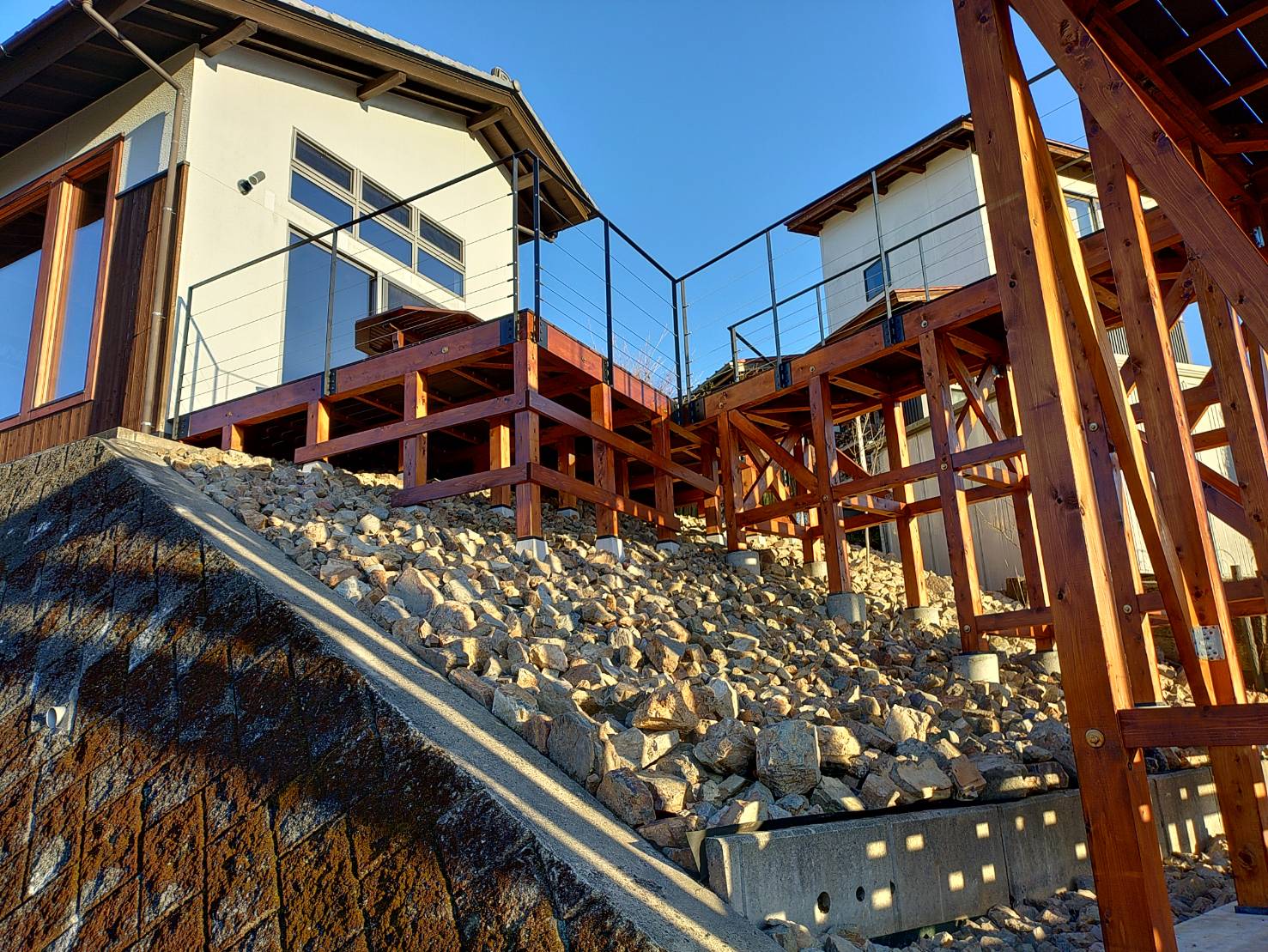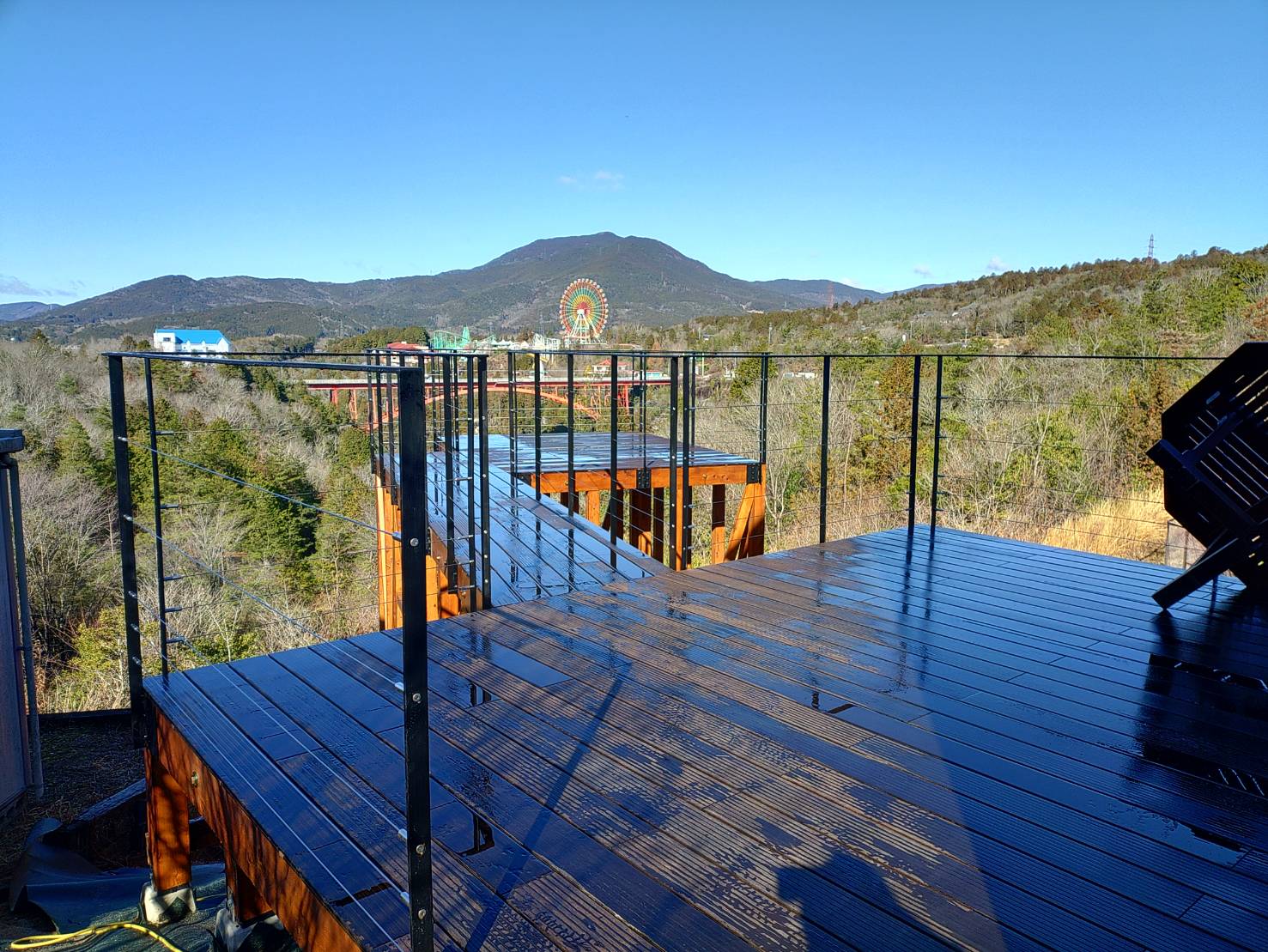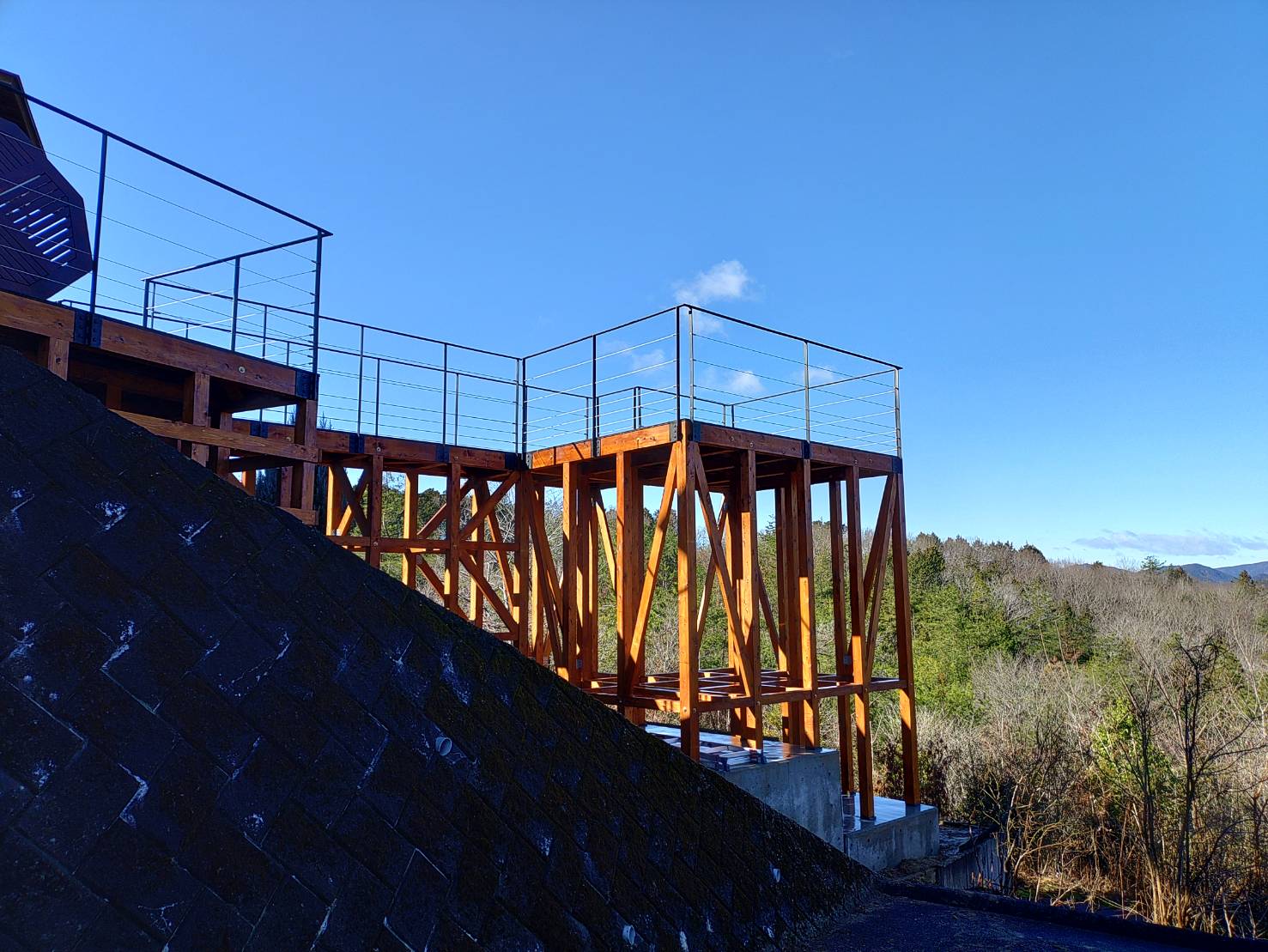 『絶景に突き出す回廊デッキ』「新しい雰囲気に」と特殊な地形で行う改修工事の打合せを進める中で、奥様のアイデアを形にしました。